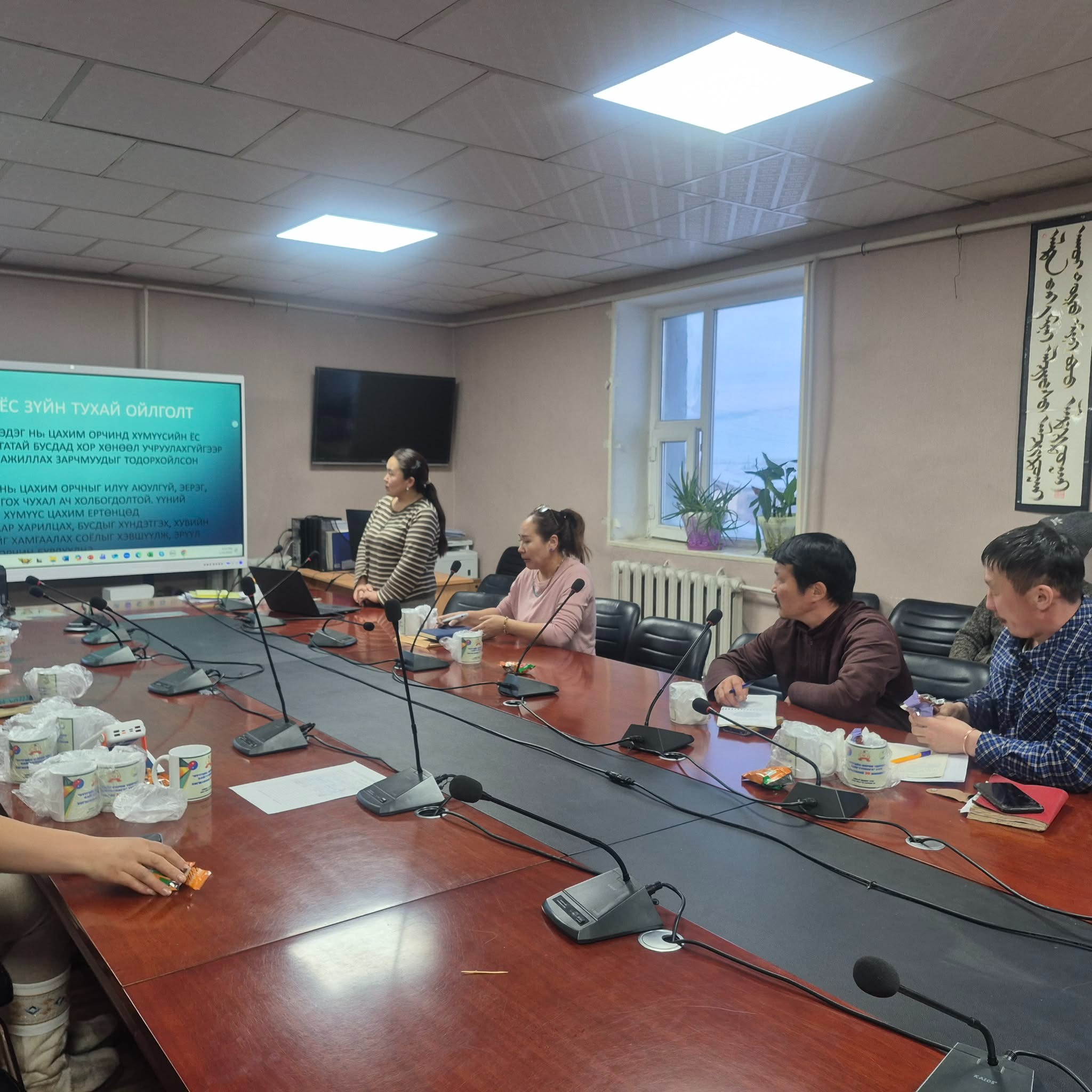 Шинэ үндсэн хууль батлагдсаны 34 жилийн ойг тэмдэглэн өнгөрүүлэх арга хэмжээний хүрээнд сумын ИТХ, ЗДТГ-тай хамтран Засаг даргын Тамгын газрын албан хаагчдад "Монгол улсын Үндсэн хууль" сэдвээр ЗДТГ-ын дарга Н.Ганхөлөг, "Төрийн албан хаагчийн ёс зүй" сэдвээр Засаг даргын орлогч Т.Бурмаа нар мэдээлэл, танилцуулга хийж, сургалт зохион байгууллаа. Сургалтыг дүгнэж АХА тэмцээнийг явууллаа.